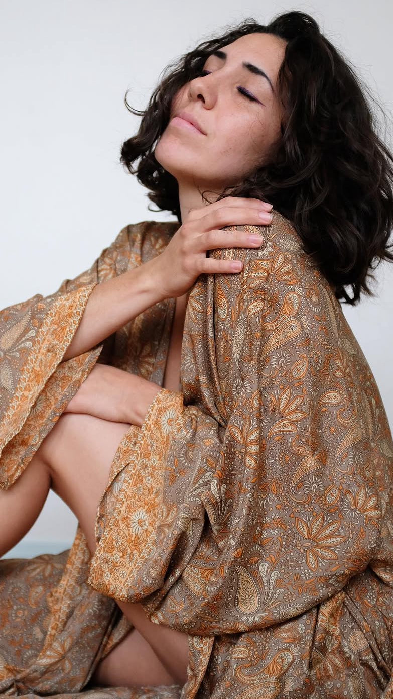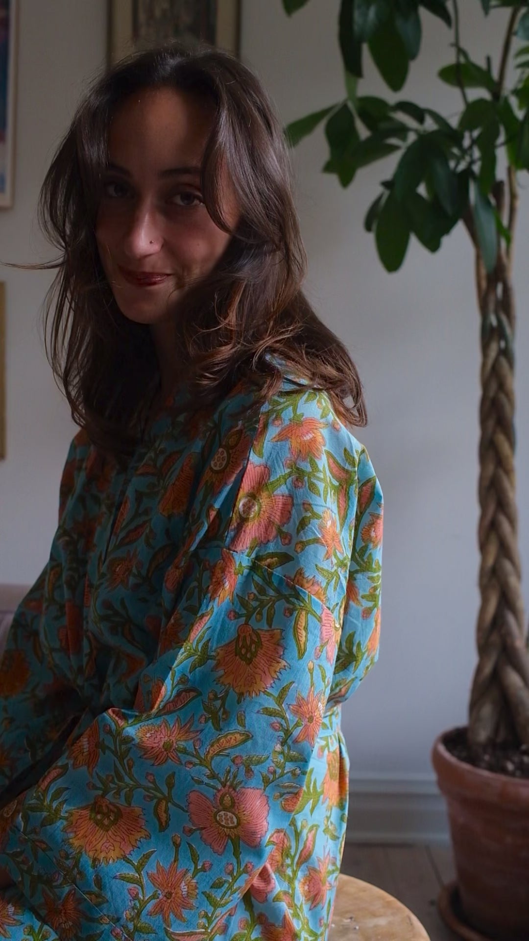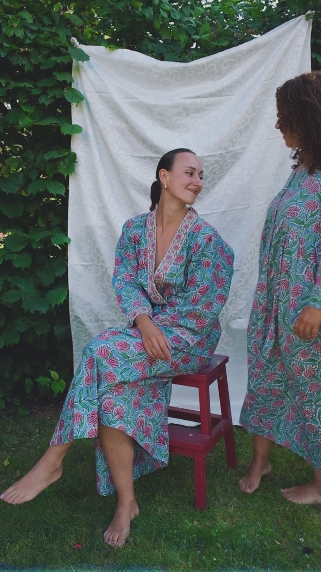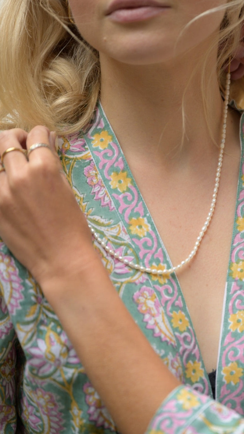 Upptäck våra morgonrockar i 100% bomull – handtryckta i färgstarka mönster från världens huvudstad för blocktryck: Jaipur.