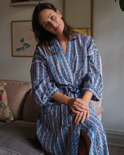 Våra bästsäljande morgonrockar i handtryckt bomull är det enklaste sättet att sätta guldkant på både morgon och kväll. Lätta, sköna och tidlöst vackra – och finns i en mängd mönster och färger att välja bland.