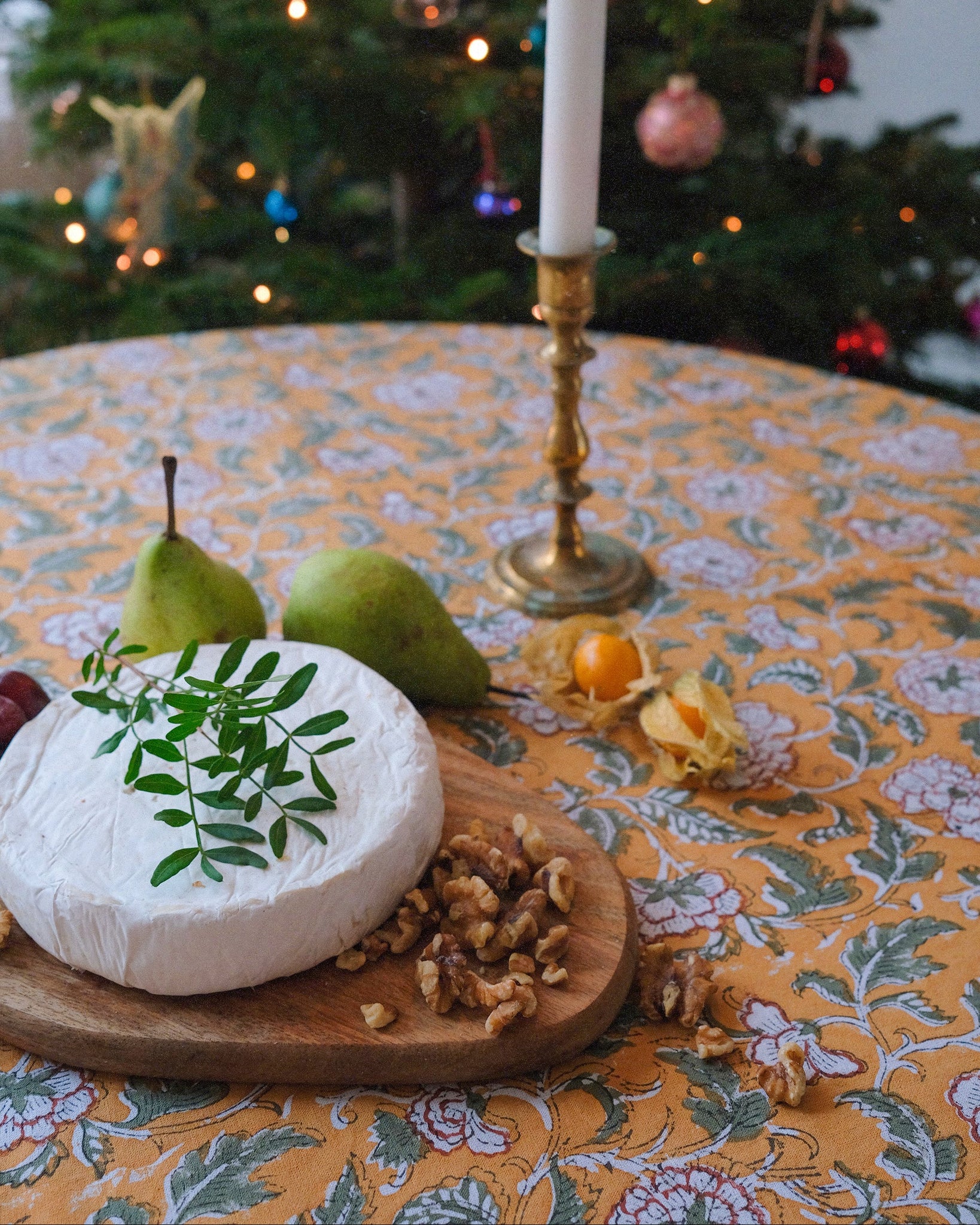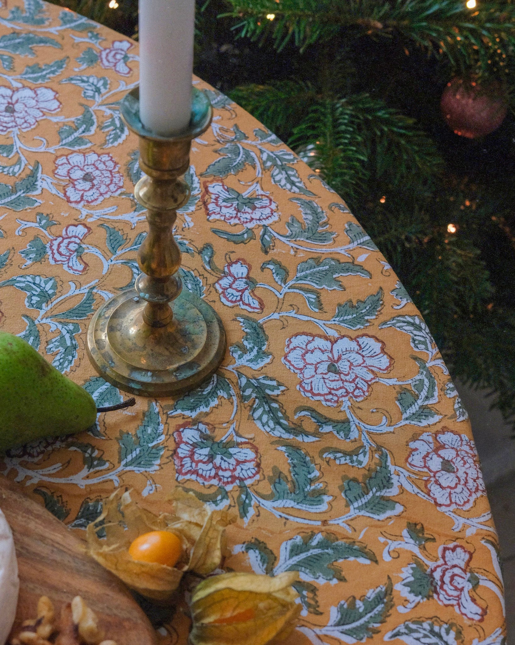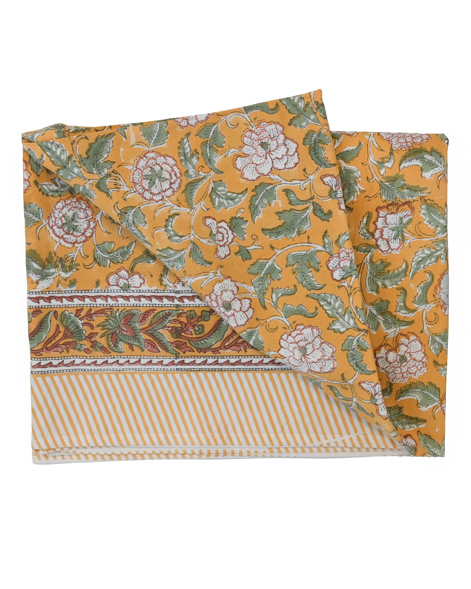 Duk med handtryckt mönster.