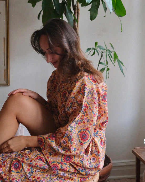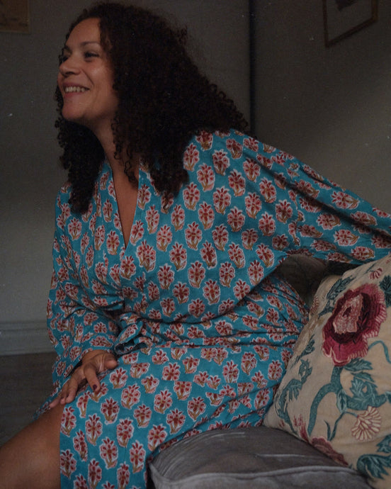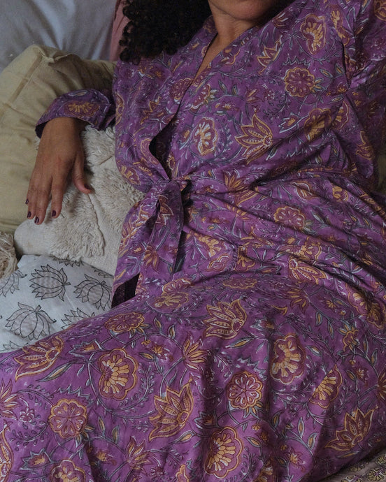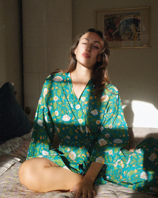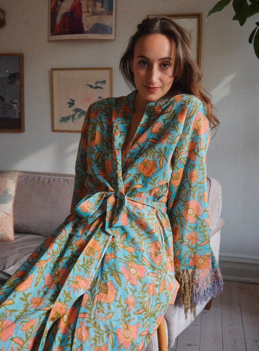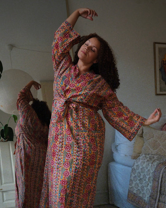 Upptäck våra morgonrockar i 100% bomull – handtryckta i färgstarka mönster från världens huvudstad för blocktryck: Jaipur. Perfekta för morgon och kväll, eller som kimono till vardags. Välj mellan långa och korta morgonrockar i många unika mönster.