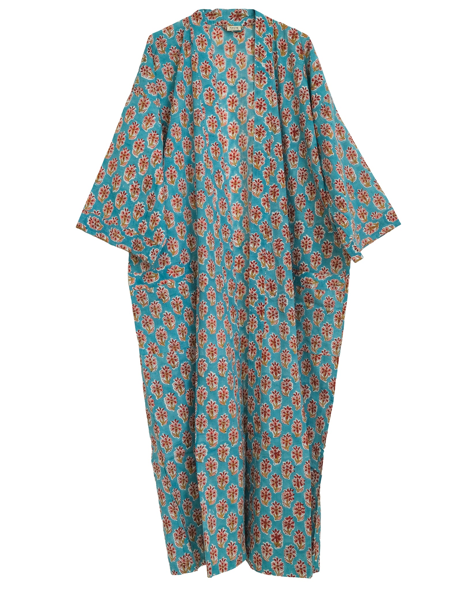 Morgonrock i handtryckt bomullstyg.